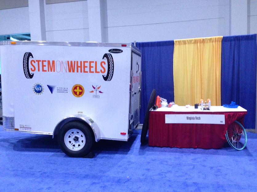 STEM-on-Wheels is an ongoing project to outfit a mobile STEM trailer with fun, hands-on, science, technology, engineering, and mathematics activities for schools, after-school clubs, scouts, and other community groups. The new trailer made its first public appearance at the 2014 ASNE Fleet Maintenance and Modernization Symposium in Virginia Beach. To learn more about the program and upcoming schedule, please visit http://www.hampton.eng.vt.edu/stemonwheels.html.